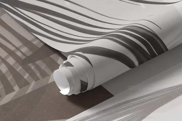 Het resultaat is dat je je behangpapier al in rollen gesneden ontvangt, netjes verpakt voor levering.