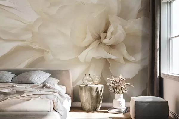 Fotobehang Getextureerde, delicate, lichtgekleurde bloem met doorschijnende bloemblaadjes, zachte abstracte achtergrond N° w09632