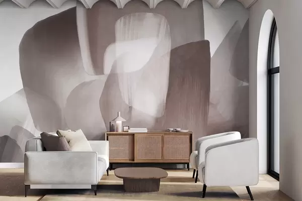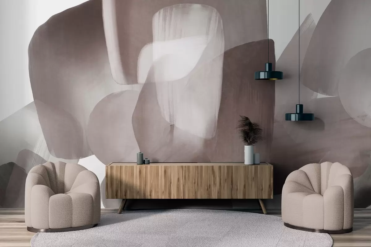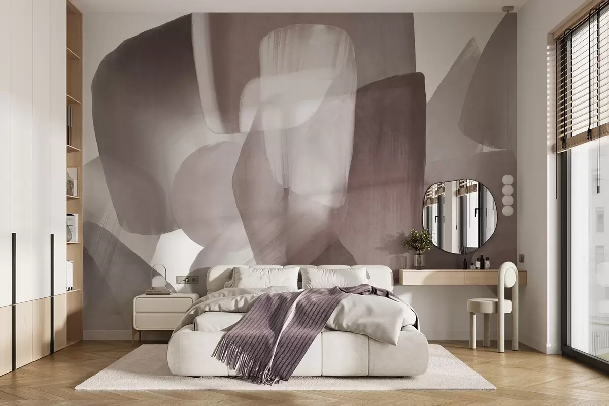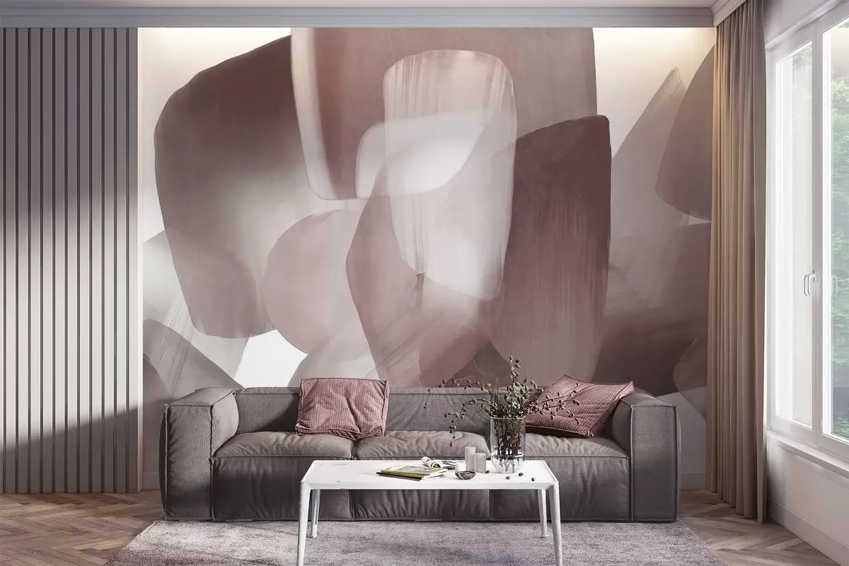 Fotobehang Abstracte vormen met textuur in gedempte bordeauxrode en grijze kleuren, met zachte randen en overlappende lagen N° w09642v2