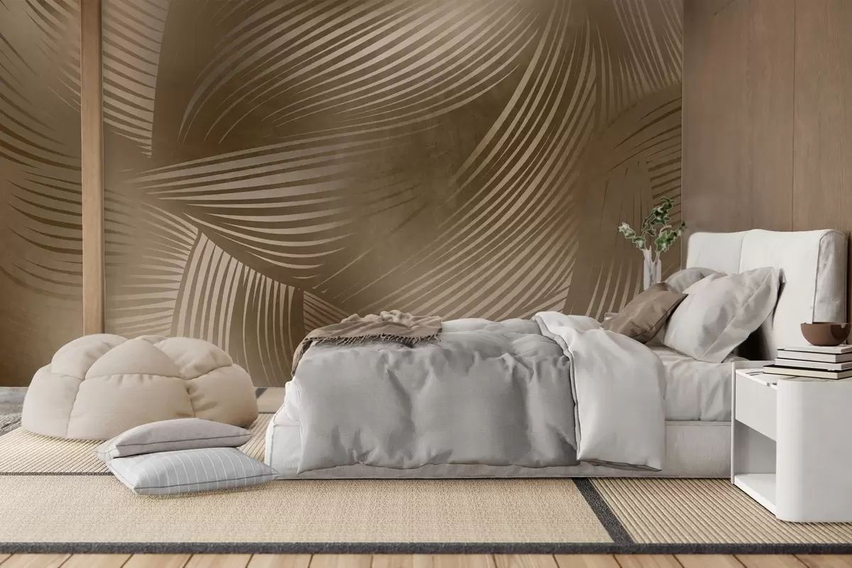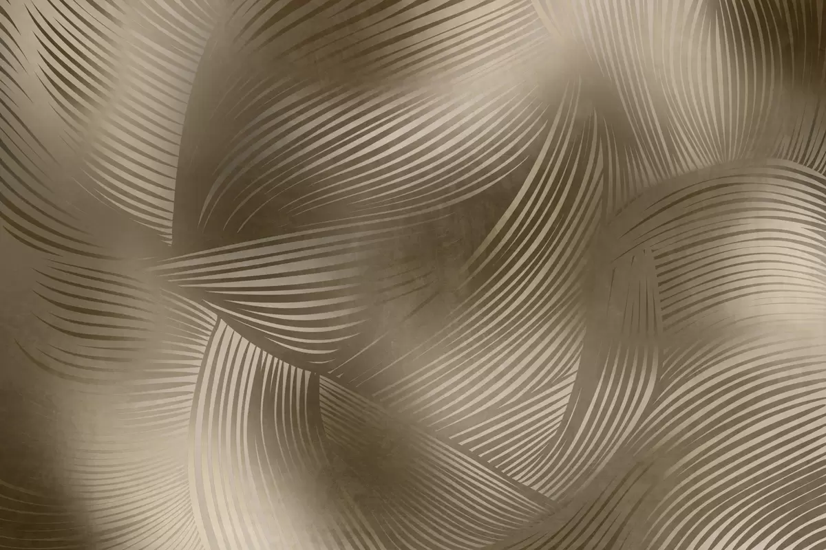 Fotobehang Abstracte print van vloeiende, gebogen lijnen in donkerbruine tinten die een gestructureerde, moderne kunst creëren. N° w09646