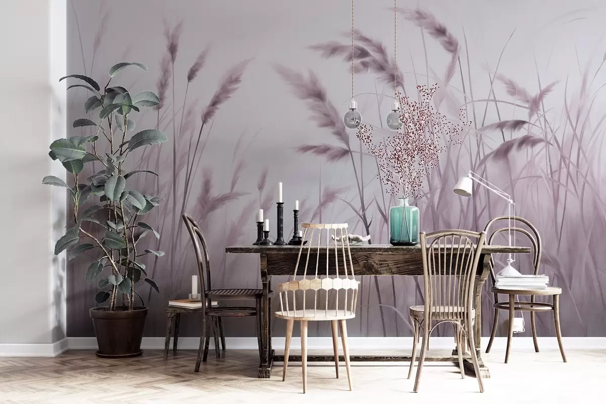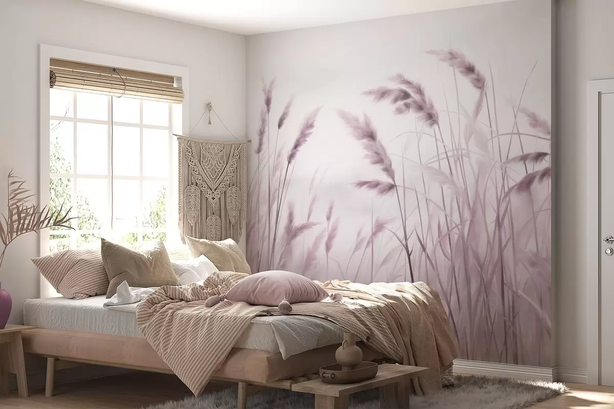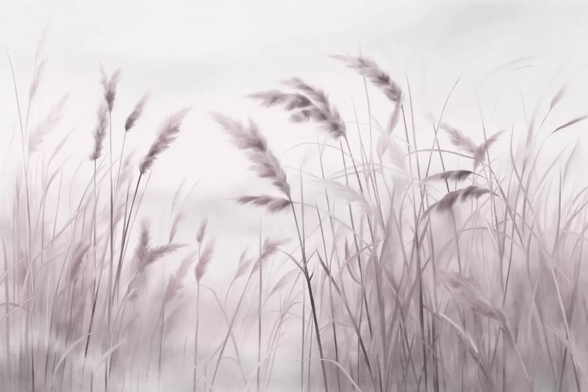Fotobehang Hoog, gestructureerd droog gras met korenaren in het veld tegen een zachte, bleke achtergrond N° w09648v2