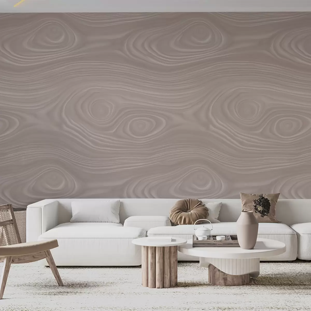 Fotobehang Abstrakt beige patroon met vloeiende lijnen en een imitatie van een natuurlijke houtstructuur N° w09681