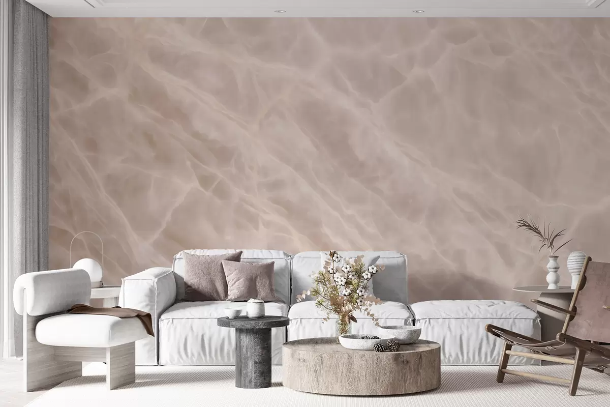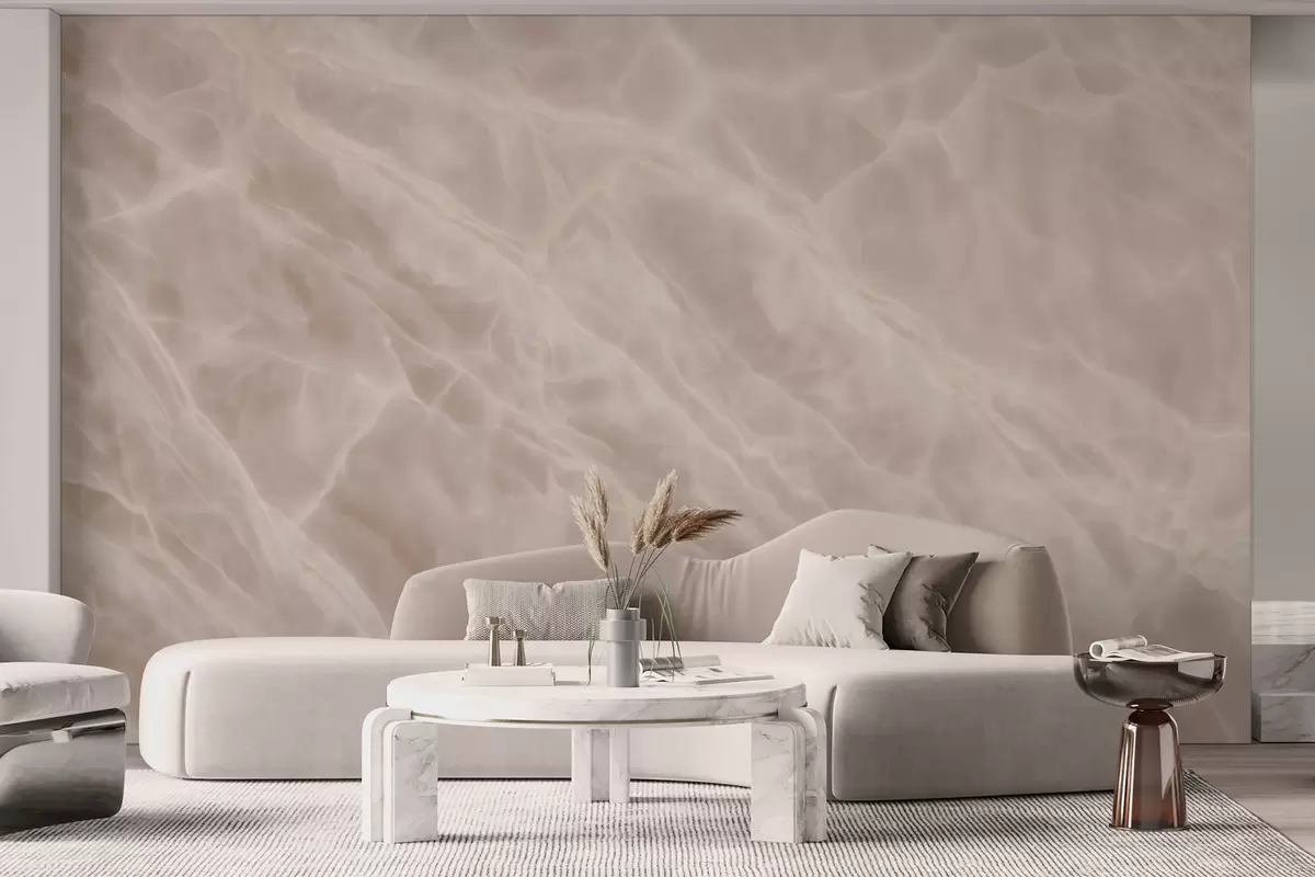 Fotobehang Elegant abstract kunstwerk in een beige kleurenpalet met marmerimitatie N° w09684
