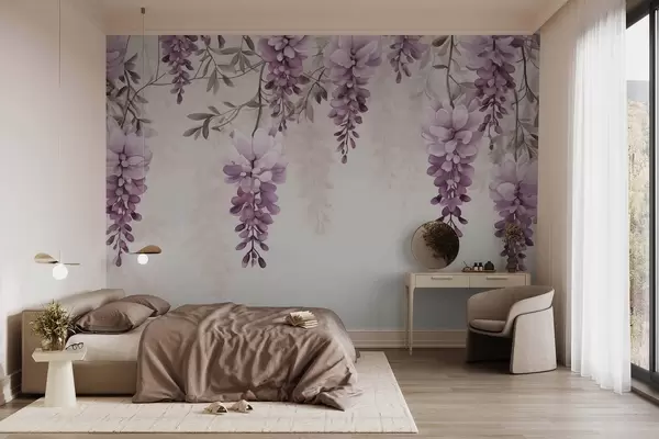 Fotobehang Delicate, grote lavendel takken aan de muur, imitatie aquarel N° w09690