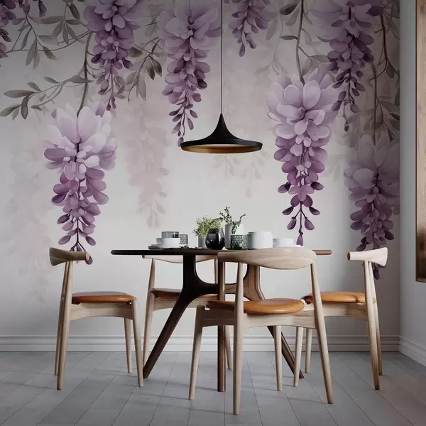 Fotobehang Delicate, grote lavendel takken aan de muur, imitatie aquarel N° w09690