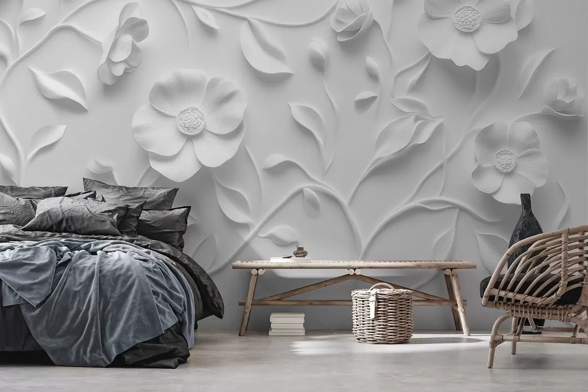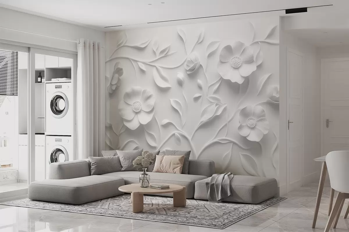 Fotobehang Grijs reliëf bloemenornament N° w09710