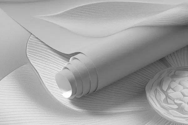 Het resultaat is dat je je behangpapier al in rollen gesneden ontvangt, netjes verpakt voor levering.