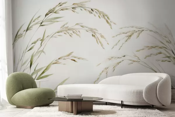 Fotobehang Fijne graangrassen in pasteltinten met een zacht aquareleffect N° w09712