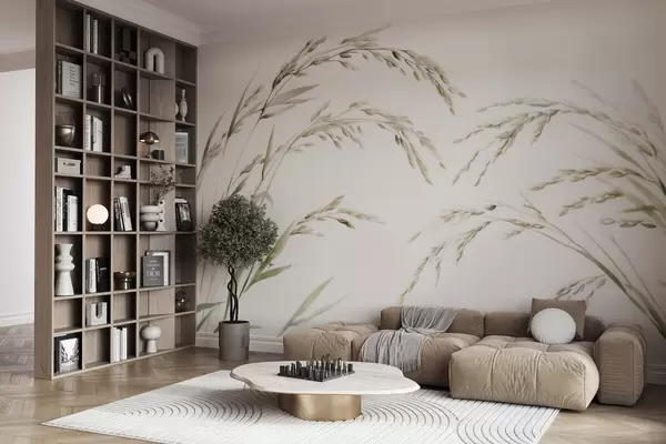 Fotobehang Fijne graangrassen in pasteltinten met een zacht aquareleffect N° w09712