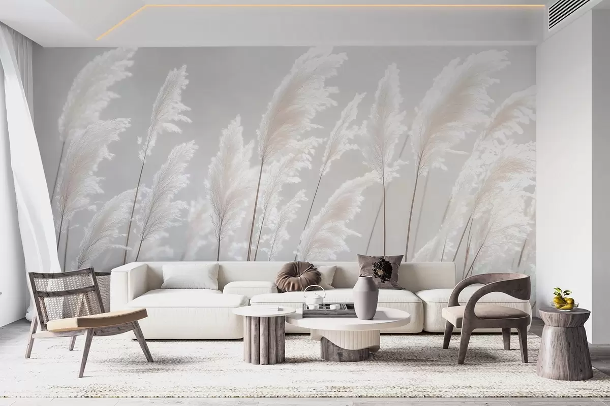 Fotobehang Zacht wit pampagras in het zachte ochtendlicht N° w09717