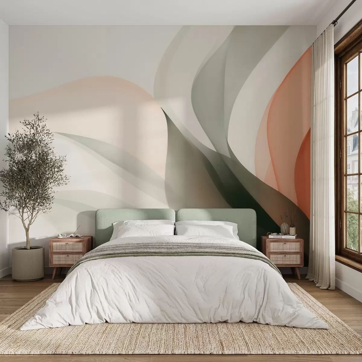 Fotobehang Abstracte pastelkleurige golven in oranje en groene tinten N° w09718