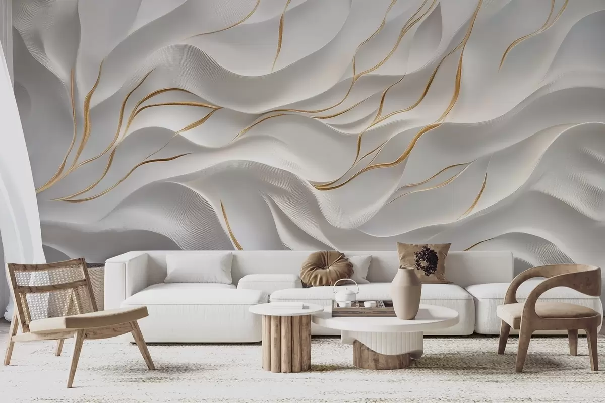Fotobehang Grijze reliëfgolven met gele accenten N° w09724