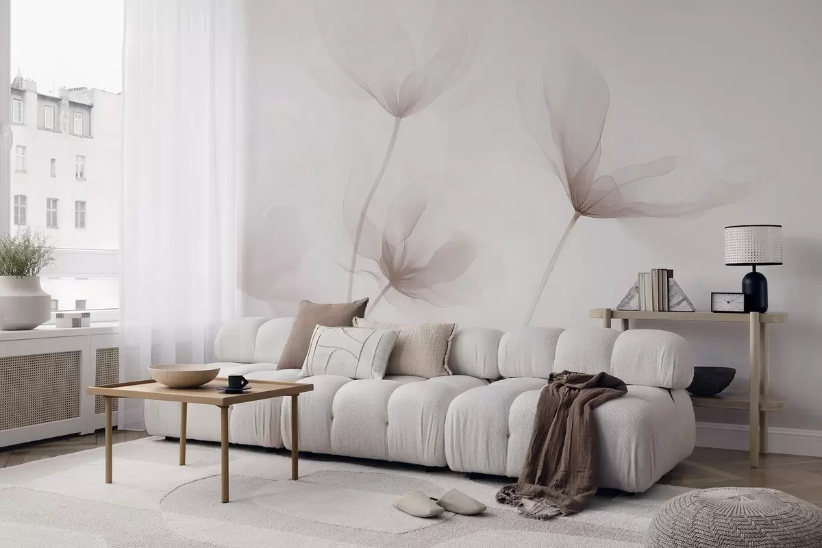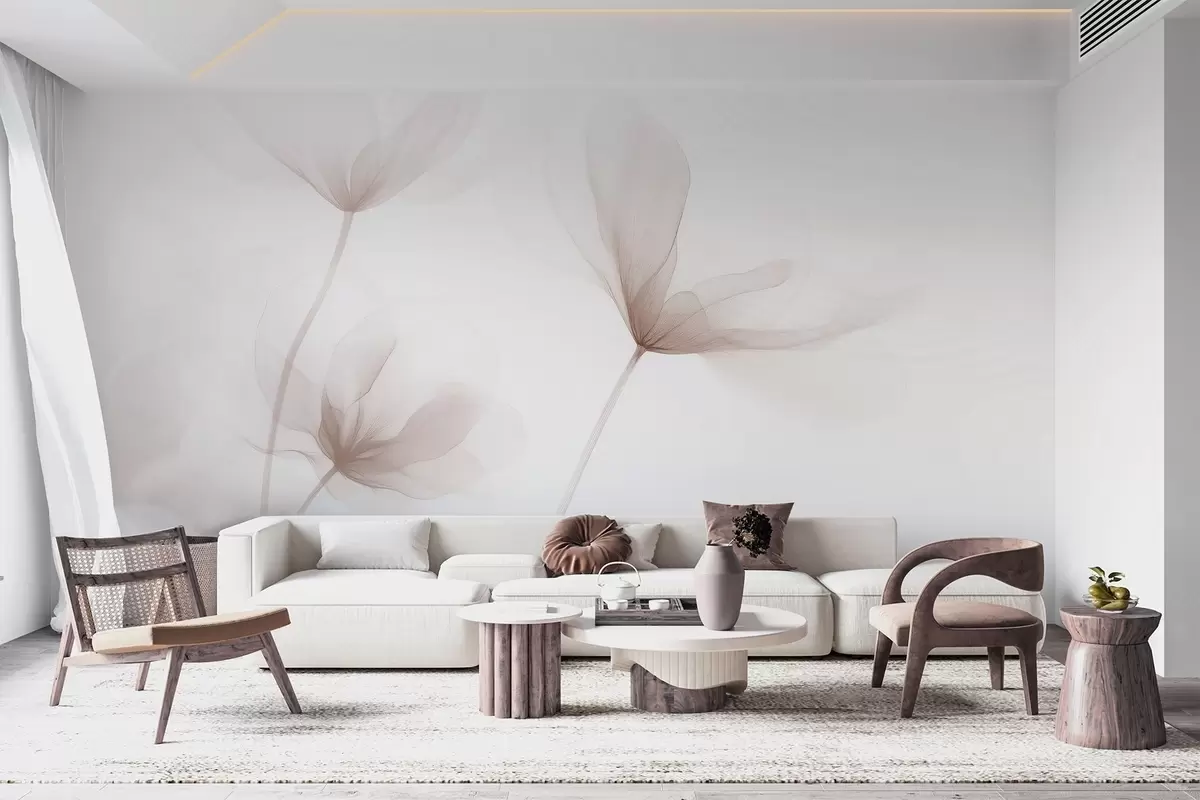 Fotobehang Luchtige beige bloemen in minimalistische, lichte stijl N° w09734