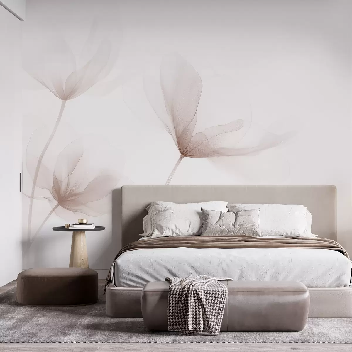 Fotobehang Luchtige beige bloemen in minimalistische, lichte stijl N° w09734