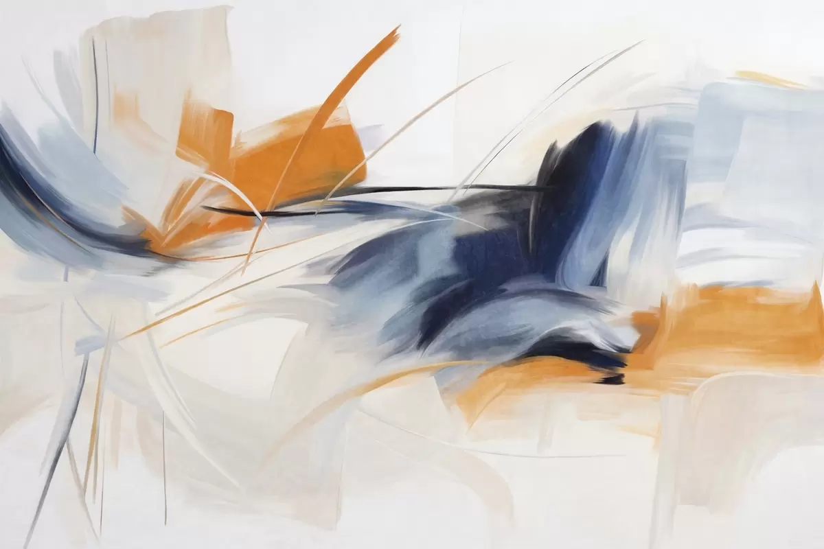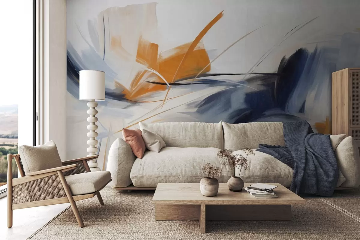Fotobehang Abstracte schilderstijl met oranje en blauwe penseelstreken met textuur N° w09755