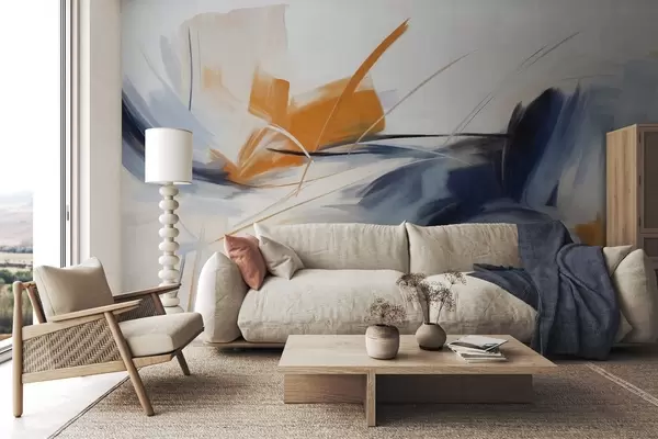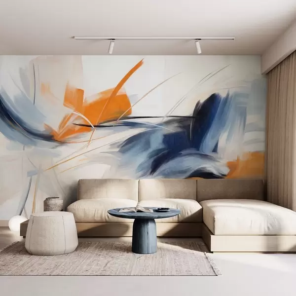 Fotobehang Abstracte schilderstijl met oranje en blauwe penseelstreken met textuur N° w09755