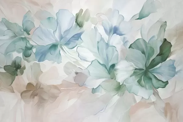 Fotobehang Abstracte fantasiebloemen in roze, perzikkleurige en lavendelkleurige tinten, uitgevoerd in een schilderachtige stijl met textuur N° w09767