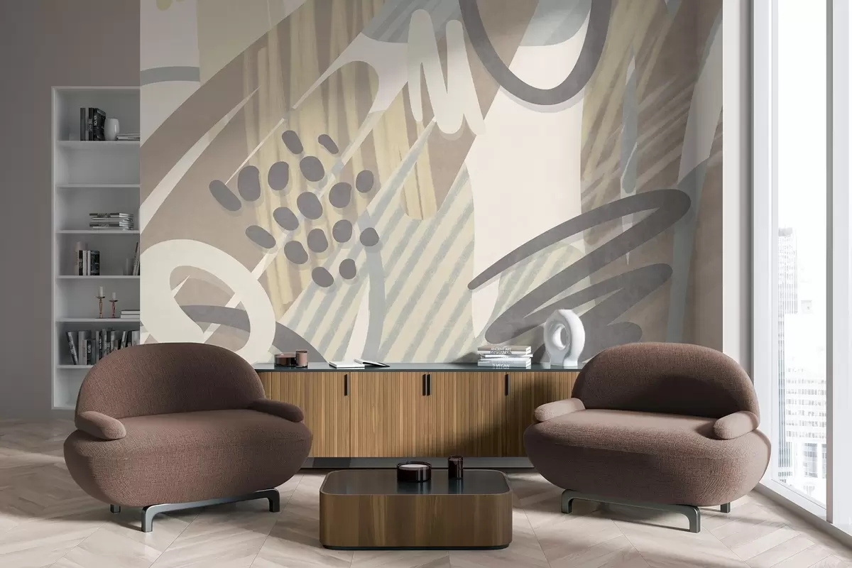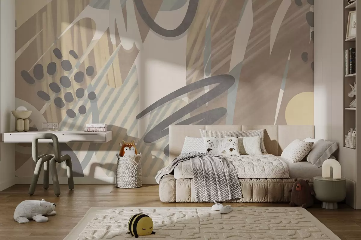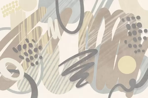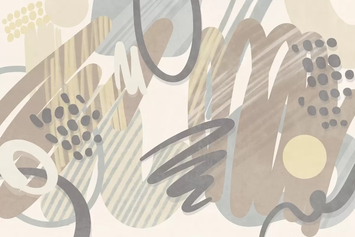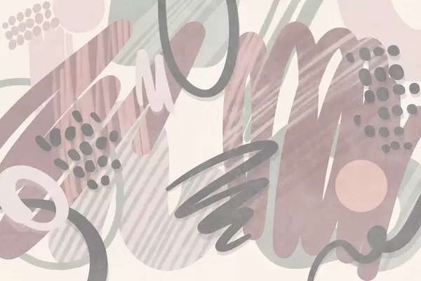Fotobehang Abstracte print met textuur, bestaande uit organische vormen, krabbels en stippen in zachte pasteltinten N° w09774