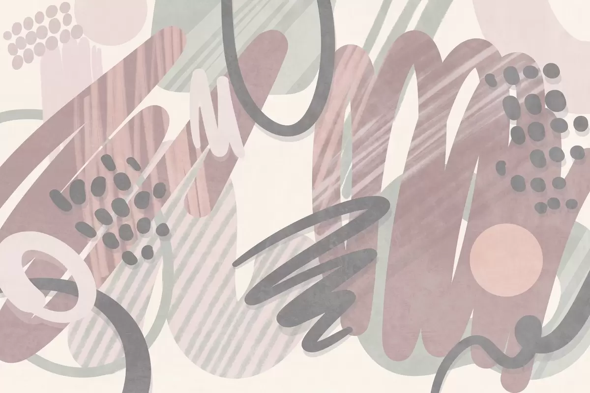 Fotobehang Abstracte print met textuur, bestaande uit organische vormen, krabbels en stippen in zachte pasteltinten N° w09774v1
