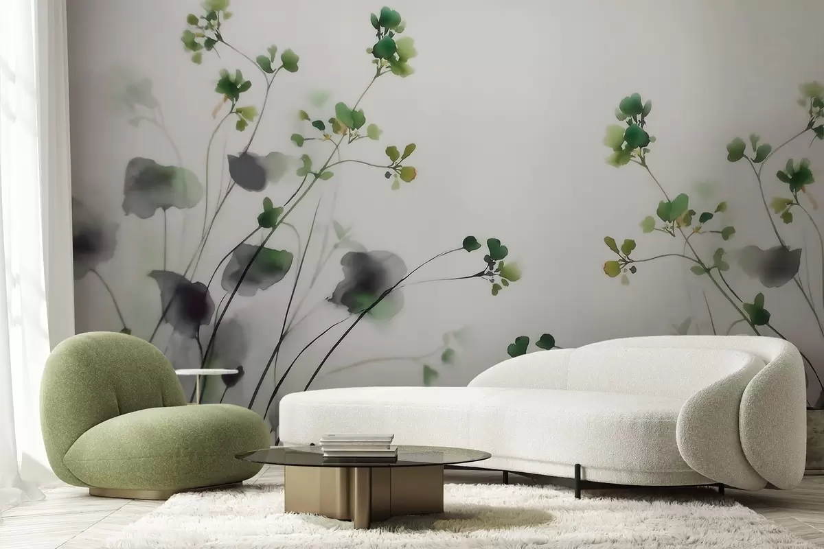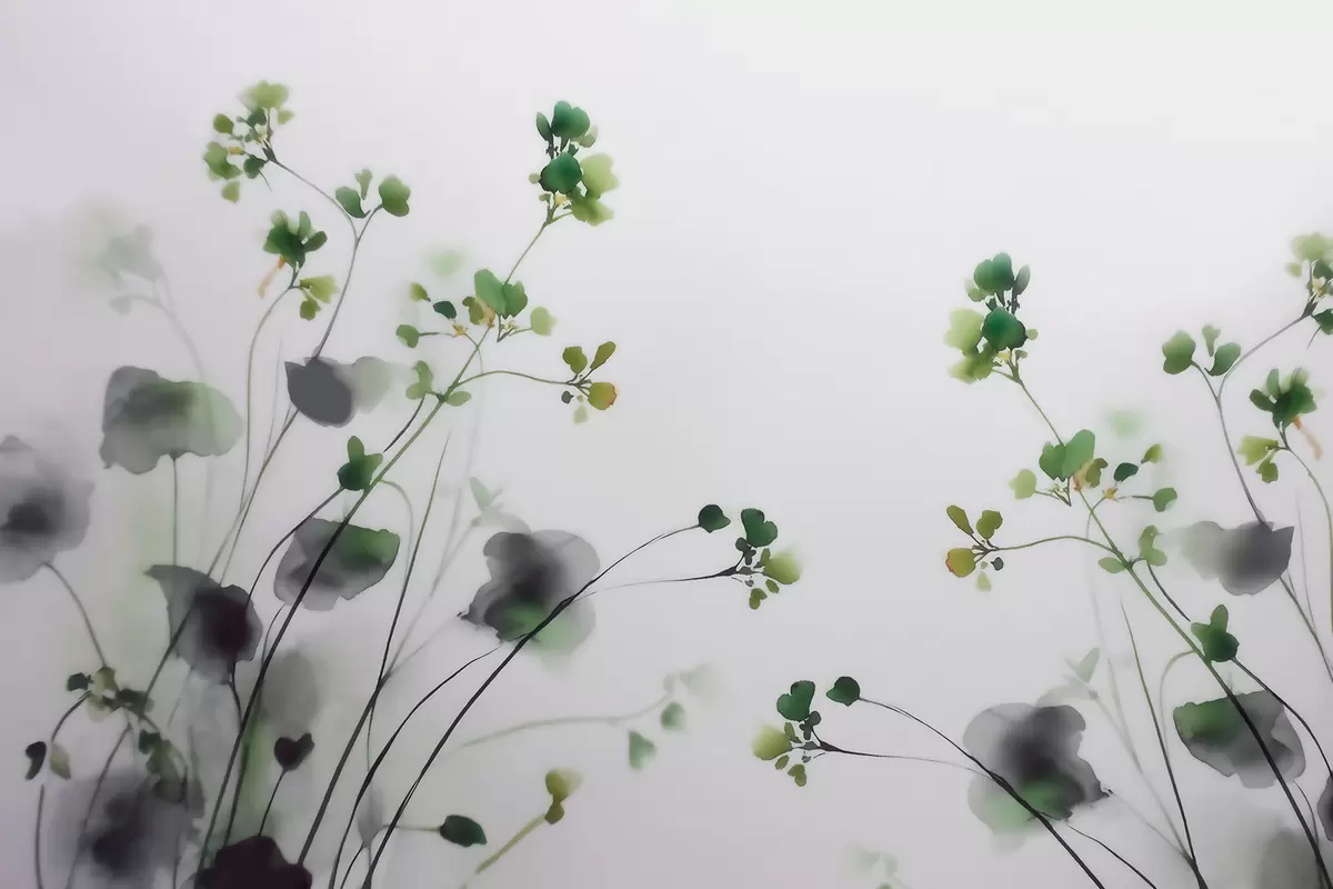 Fotobehang Fijne wilde bloemen en gras in aquarelstijl N° w09796