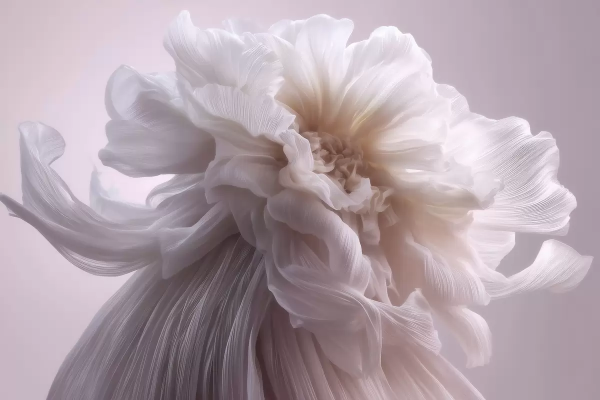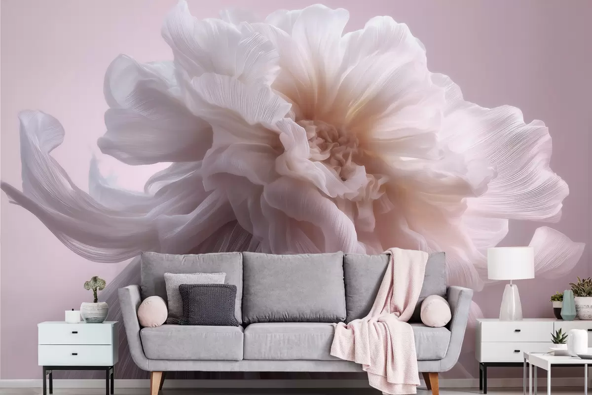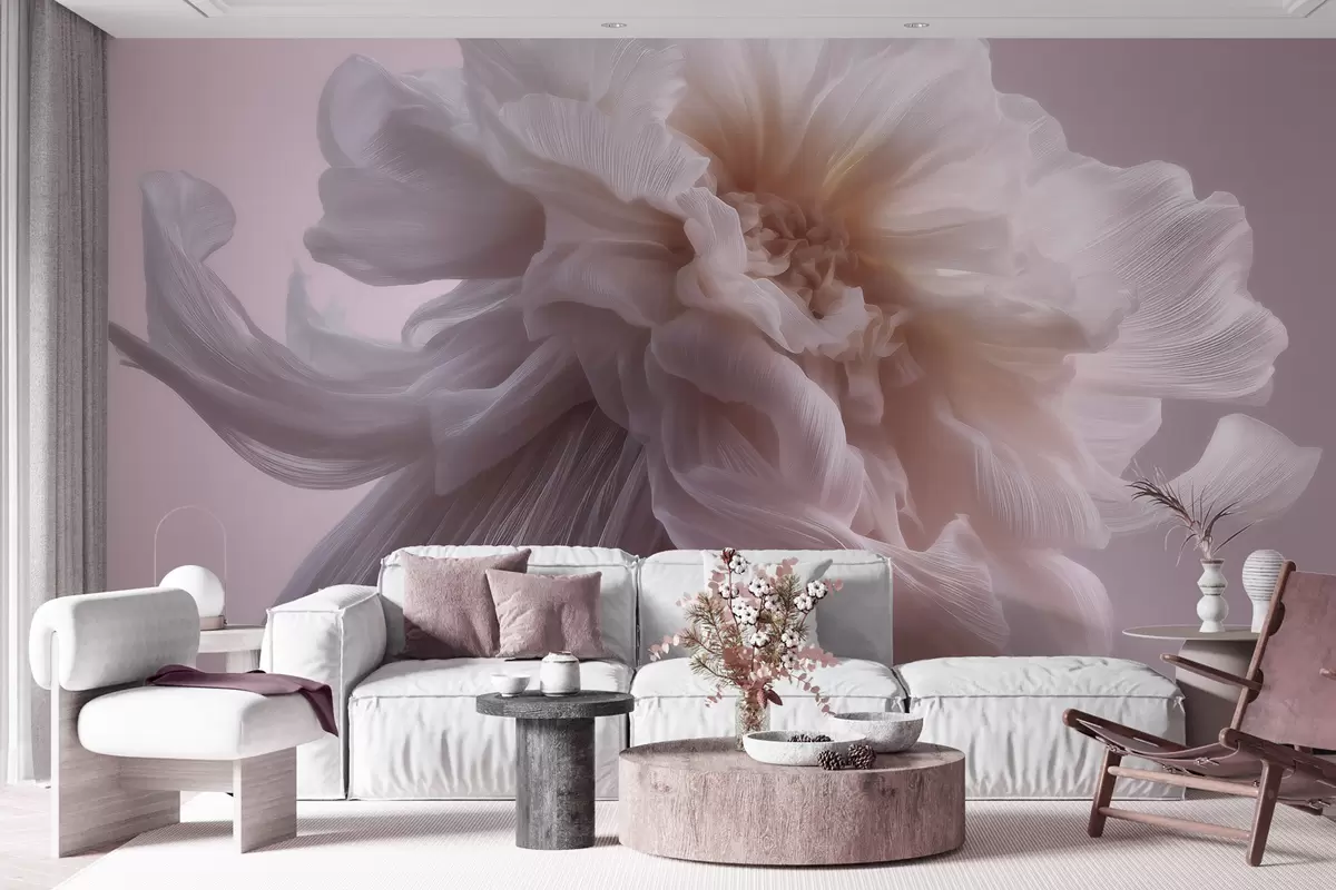 Fotobehang Volumineuze zijden bloem in zachte roze en beige tinten N° w09809