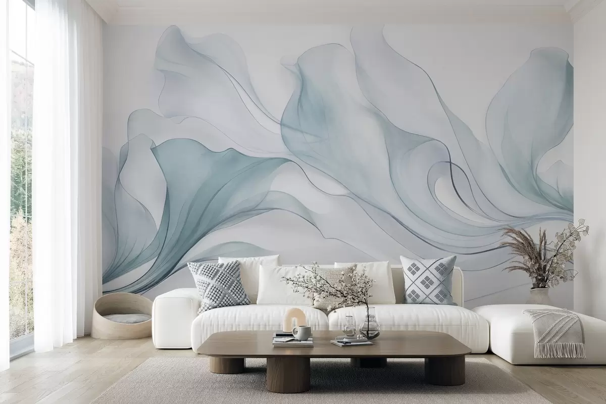 Fotobehang Een abstracte, vloeiende textuur in blauwtinten met fijne lijnen N° w09815v1
