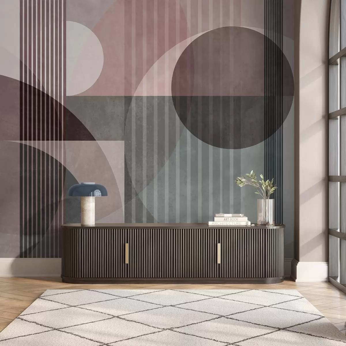 Fotobehang Abstracte geometrische vormen met cirkels en lijnen, ingetogen tinten, een compositie met textuur en gelaagdheid N° w09834v1