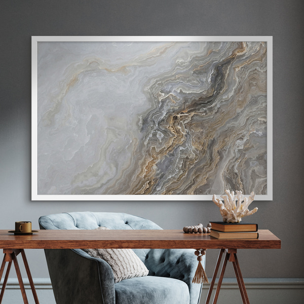 Abstracte, minimalistische compositie met blauwe en beige vormen