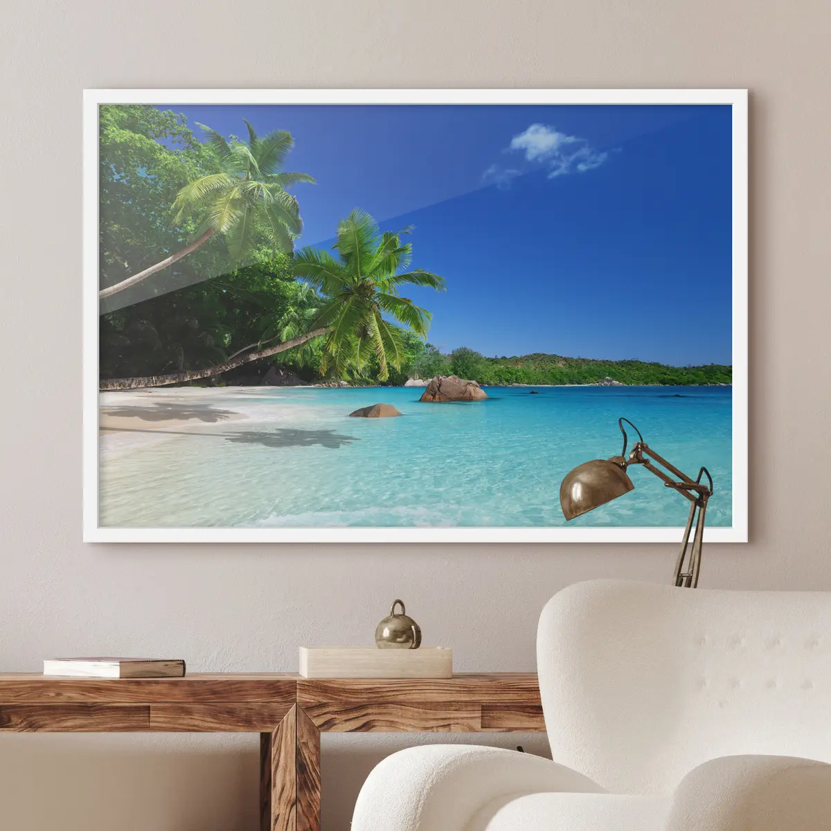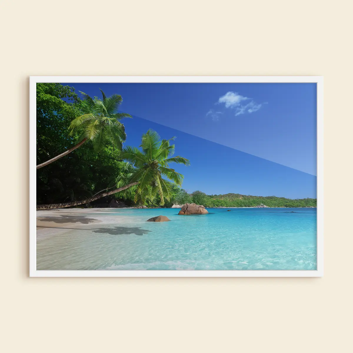 De poster bestaat uit een frame, plexiglas, geprinte afbeelding en spaanplaat achterkant. De poster kan meteen aan de muur worden gehangen dankzij de bevestigingen op de achterkant.