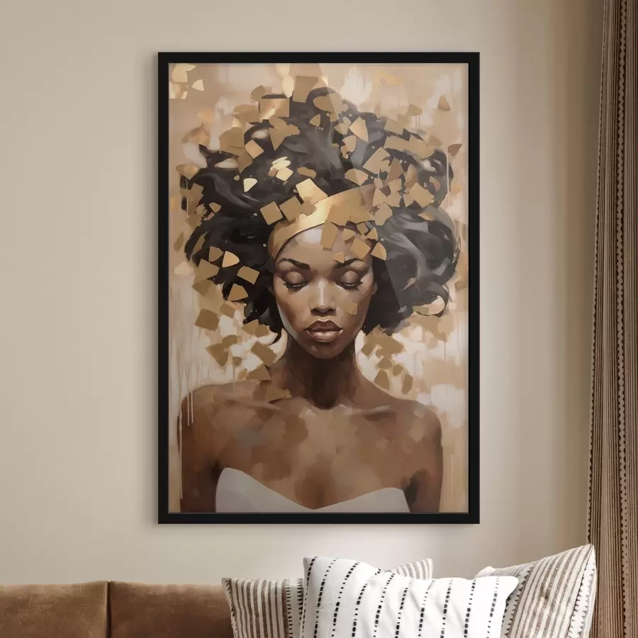 beige portret van een vrouw in Afrikaanse stijl in profiel met grote oorbellen