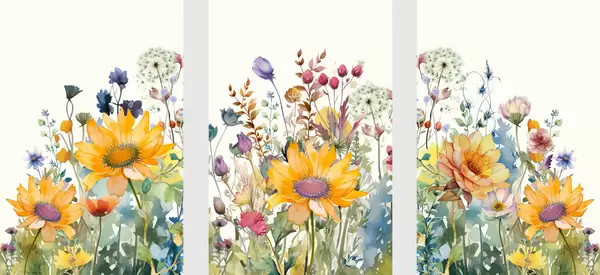 Poster Kleurrijke zomerse waterverf wilde bloemen d00333