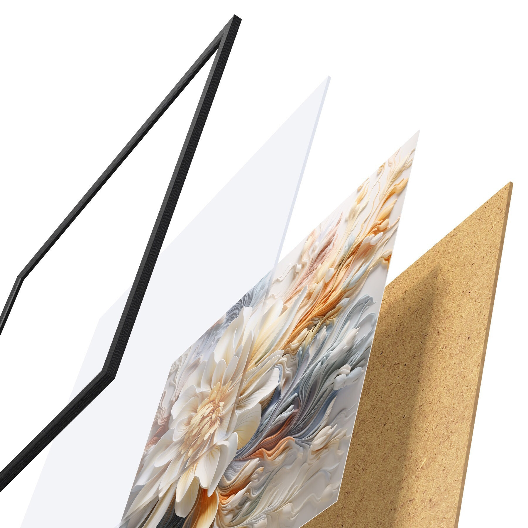 De poster bestaat uit een frame, plexiglas, geprinte afbeelding en spaanplaat achterkant. De poster kan meteen aan de muur worden gehangen dankzij de bevestigingen op de achterkant.