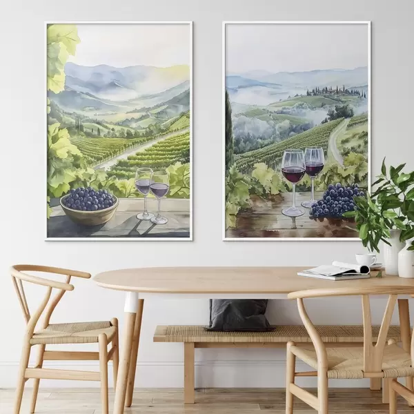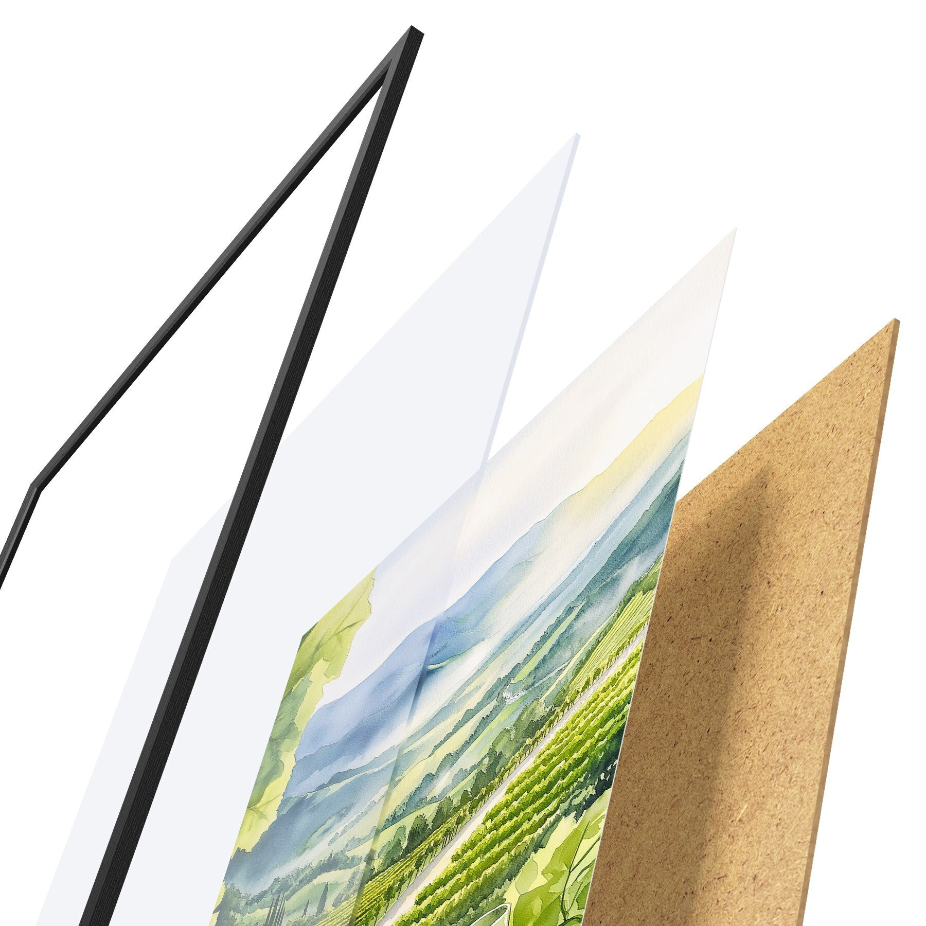 Poster Mooie Toscaanse landschappen, wijngaarden, wijnglazen, aquarel stijl, Italië d00408