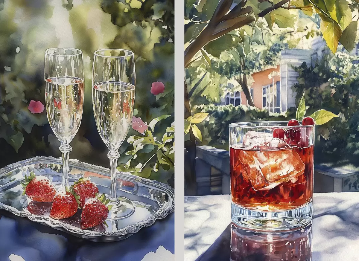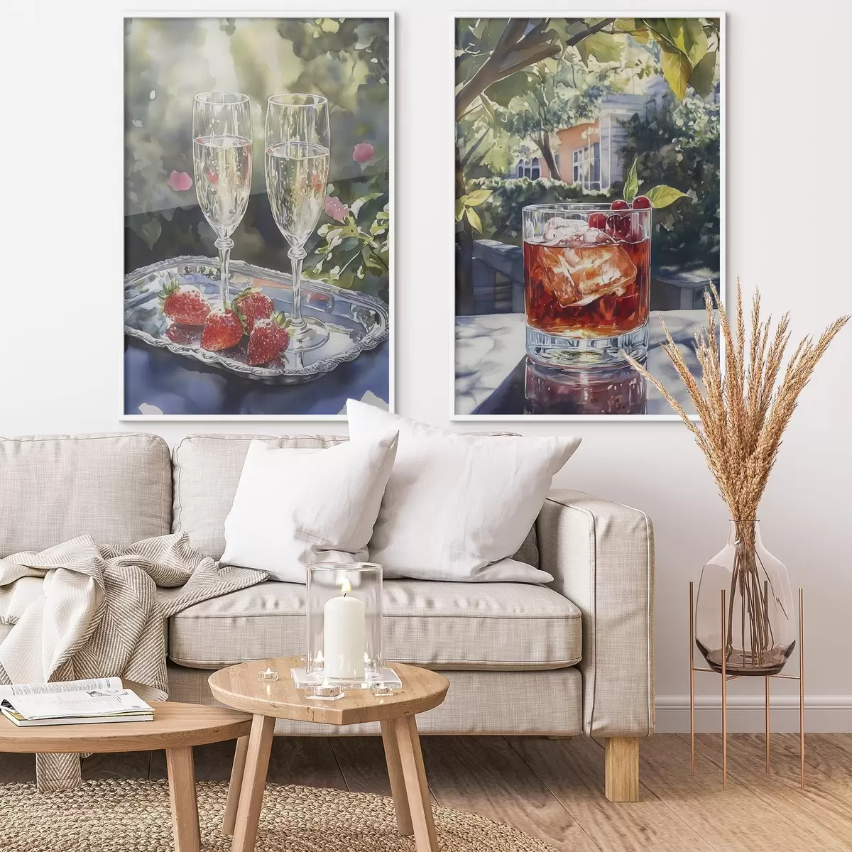 Poster Heerlijke cocktails met bessen, aquarelstijl, esthetiek, zomernatuur d00415