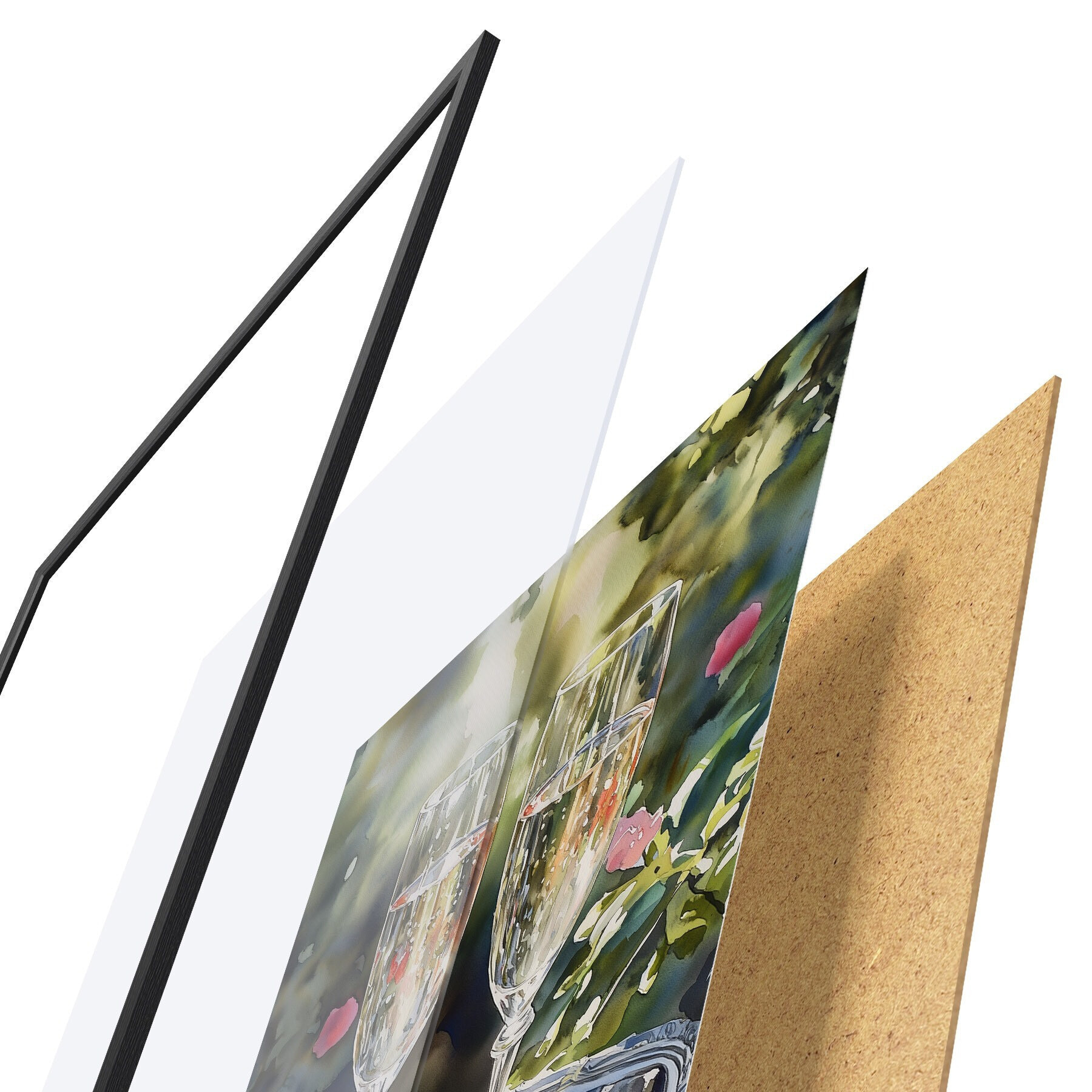 De poster bestaat uit een frame, plexiglas, geprinte afbeelding en spaanplaat achterkant. De poster kan meteen aan de muur worden gehangen dankzij de bevestigingen op de achterkant.