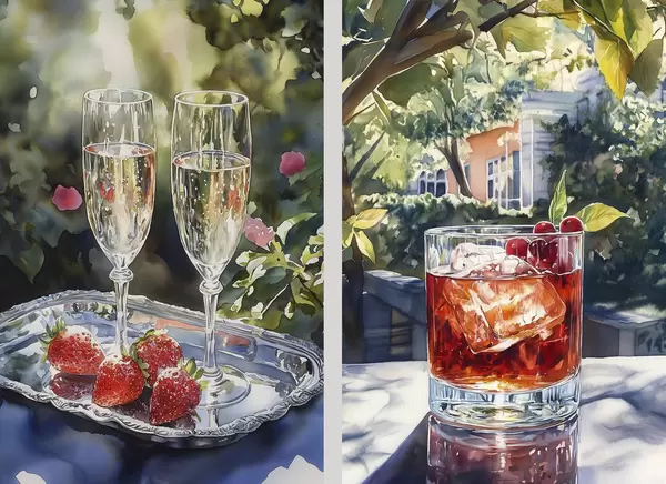 Poster Heerlijke cocktails met bessen, aquarelstijl, esthetiek, zomernatuur d00415