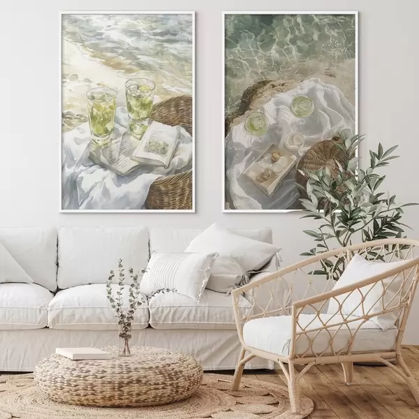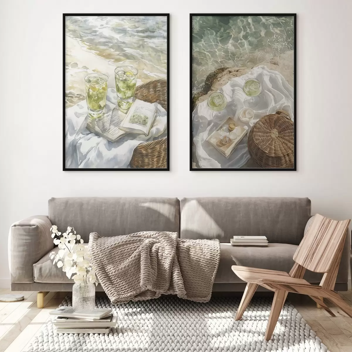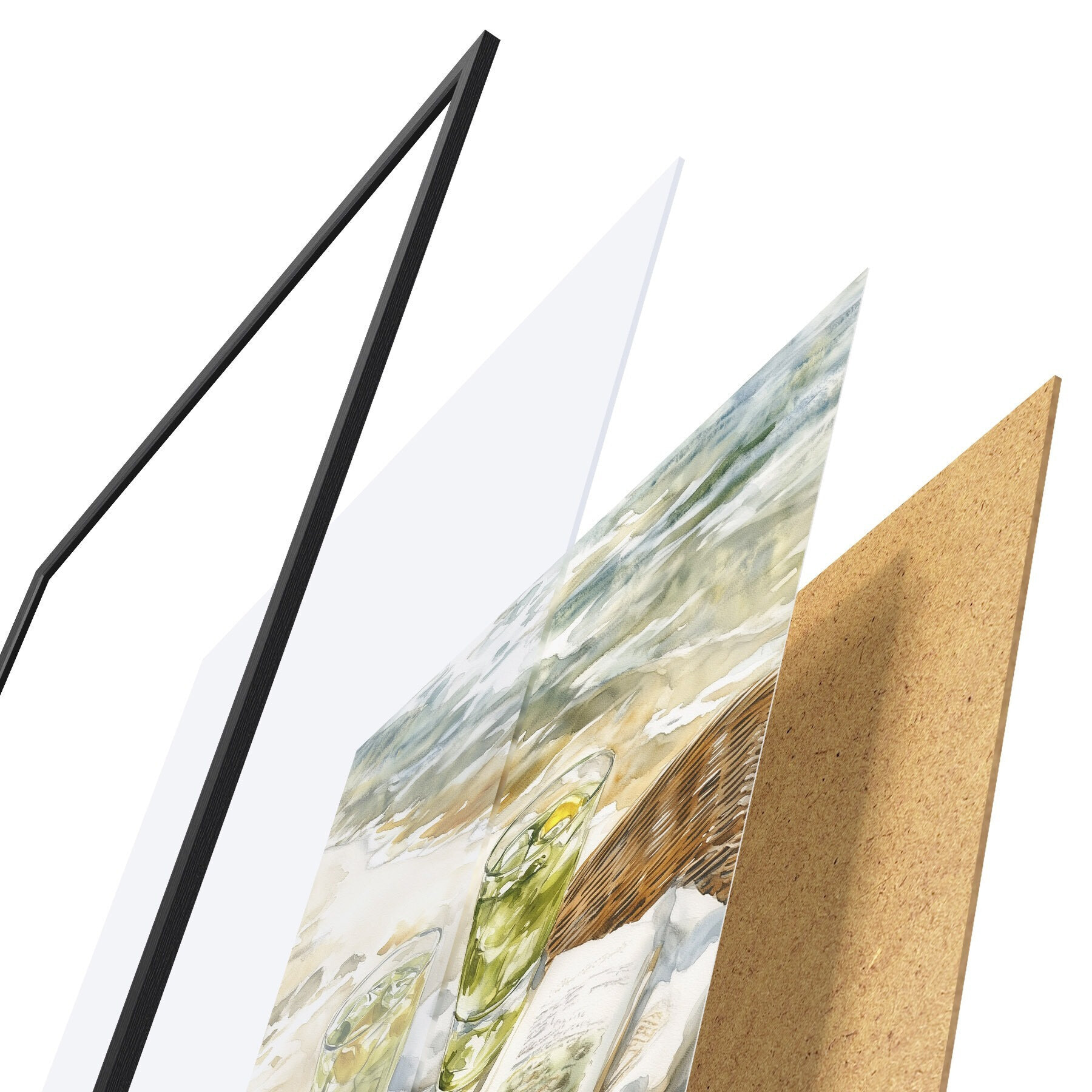 Poster Cocktails op het strand, aquarel tekening, oceaan, zomer picknick N° d00417