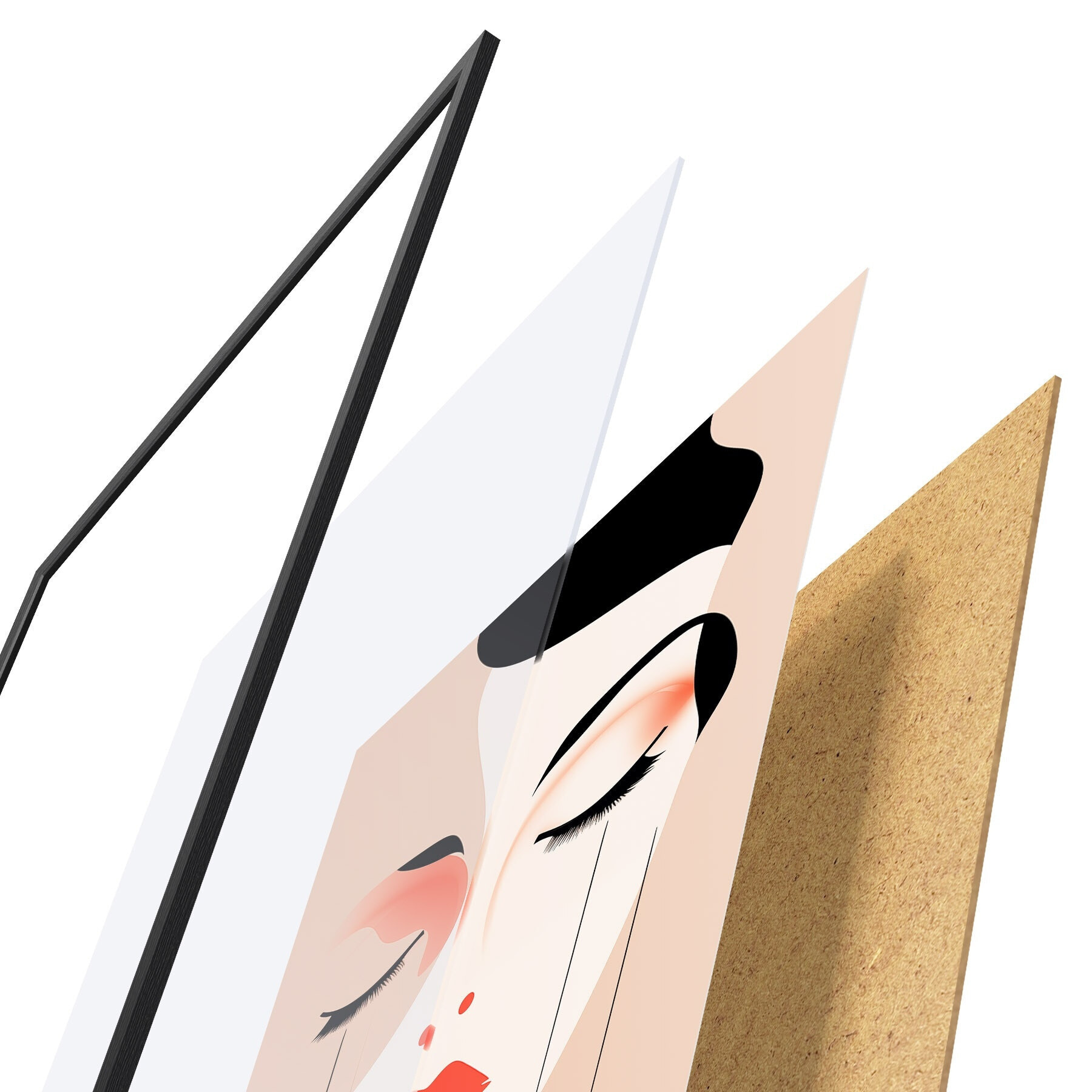De poster bestaat uit een frame, plexiglas, geprinte afbeelding en spaanplaat achterkant. De poster kan meteen aan de muur worden gehangen dankzij de bevestigingen op de achterkant.