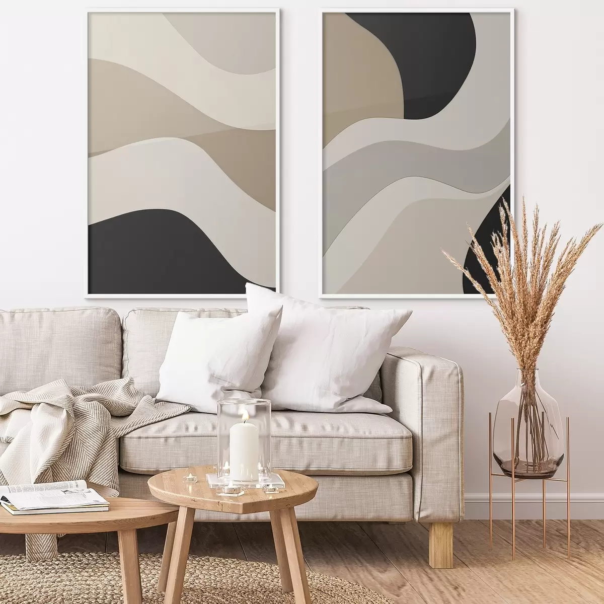 Poster Abstracte golven in beige en zwarte tinten N° d00460