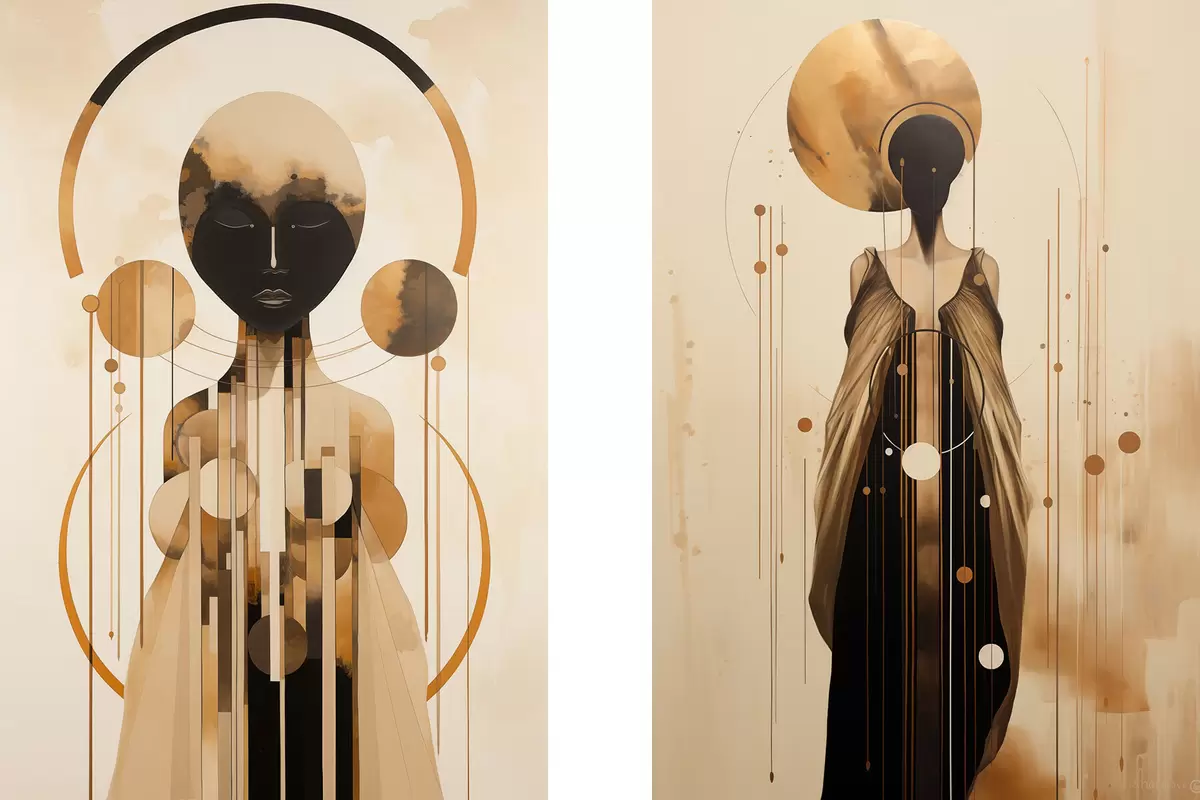 Poster Figuren in moderne abstracte stijl met cirkels N° d00464