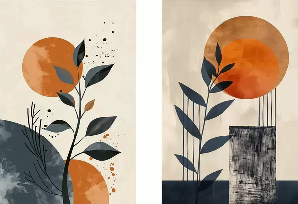 Poster Bladeren bij zonsondergang N° d00469