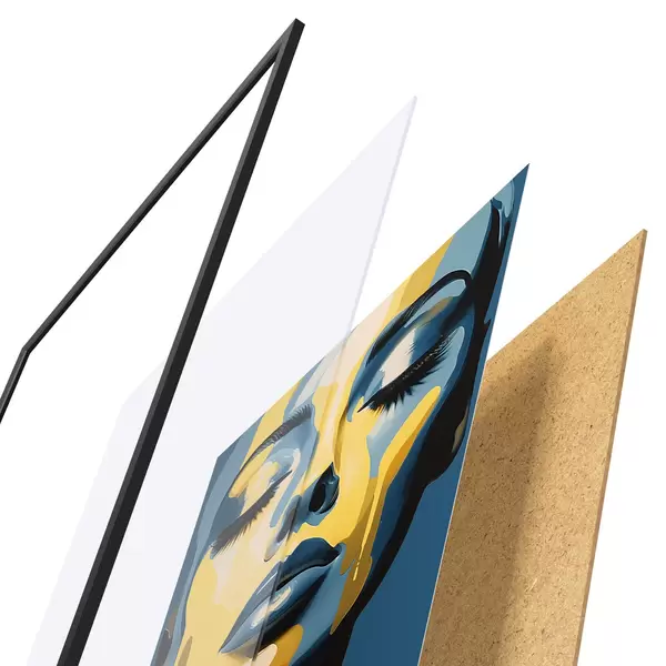 De poster bestaat uit een frame, plexiglas, geprinte afbeelding en spaanplaat achterkant. De poster kan meteen aan de muur worden gehangen dankzij de bevestigingen op de achterkant.