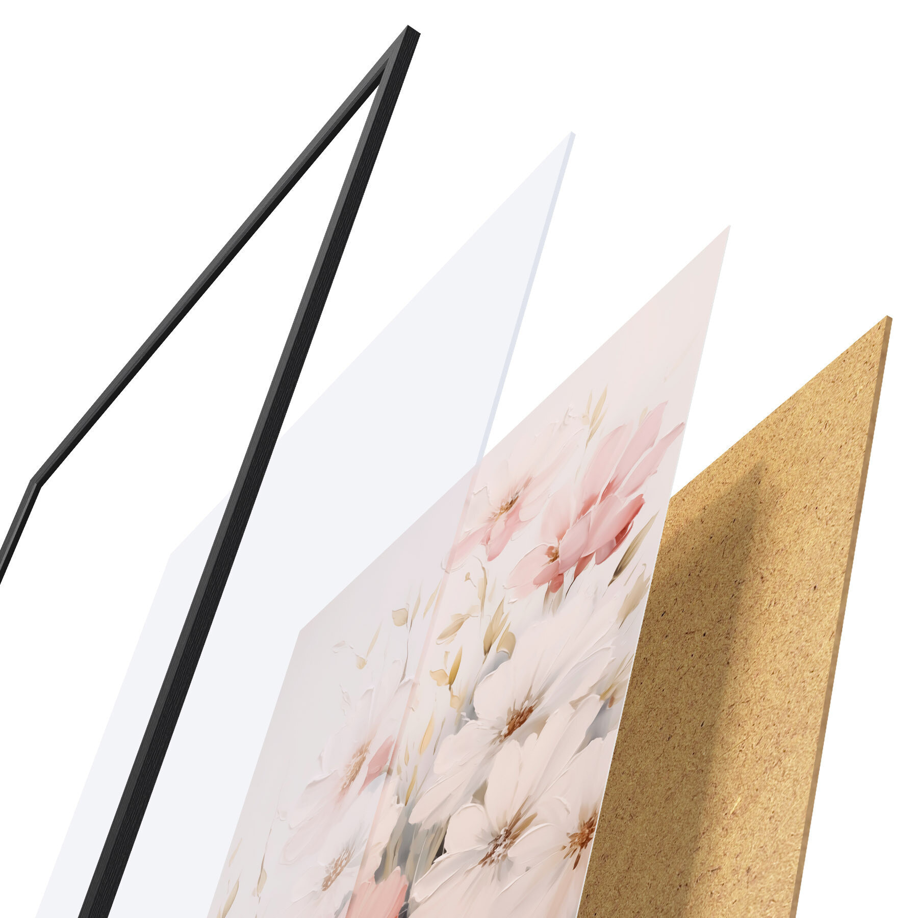 De poster bestaat uit een frame, plexiglas, geprinte afbeelding en spaanplaat achterkant. De poster kan meteen aan de muur worden gehangen dankzij de bevestigingen op de achterkant.