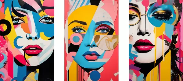 Poster Abstractie van kleurrijke gezichten N° d00557