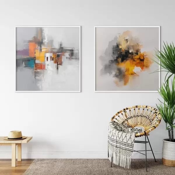 Poster Expressieve stad: kunstcompositie met contrasterende kleuren N° d00566