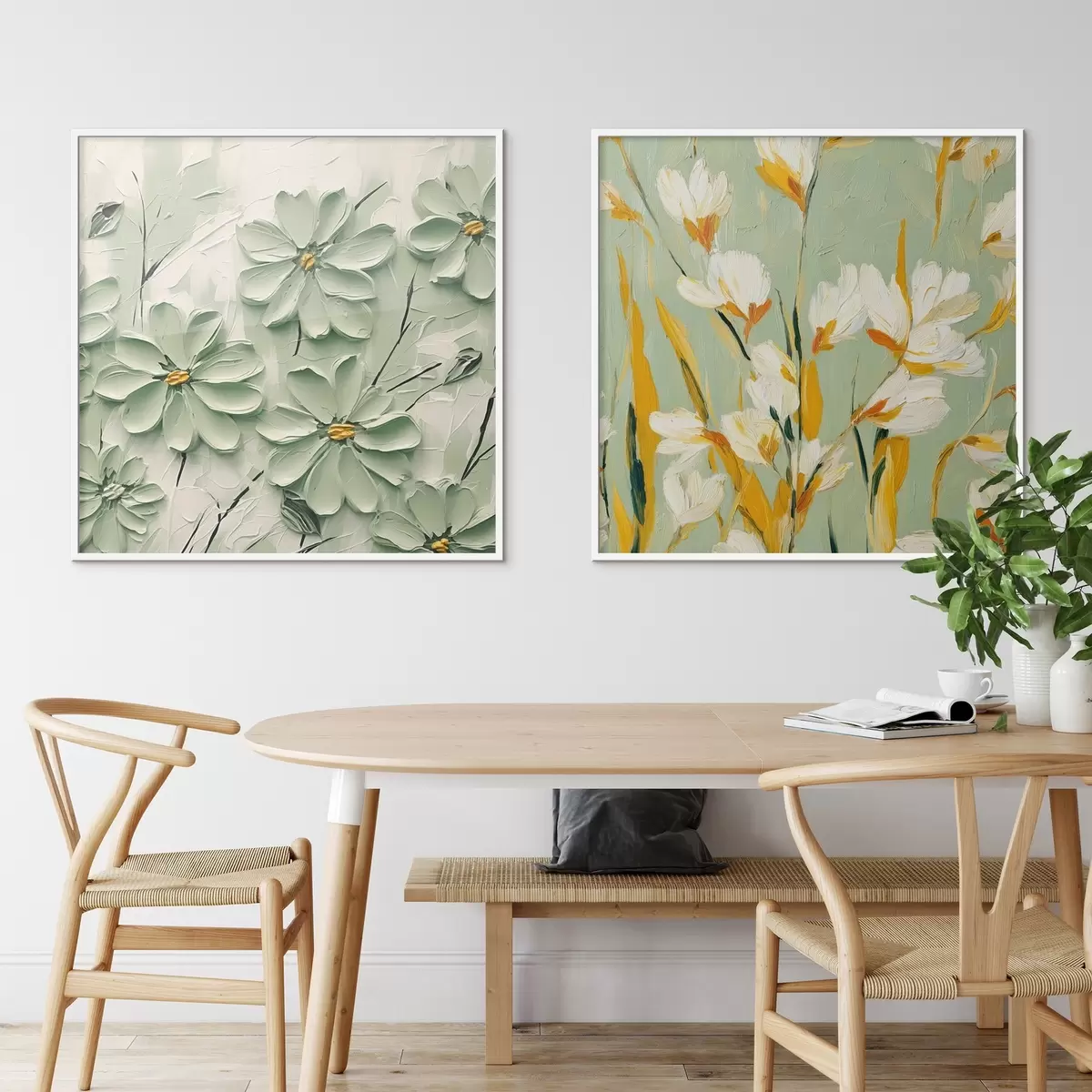 Poster Bloemenweide: kunstcompositie met volumetrische bloemen op een pastelachtergrond N° d00567