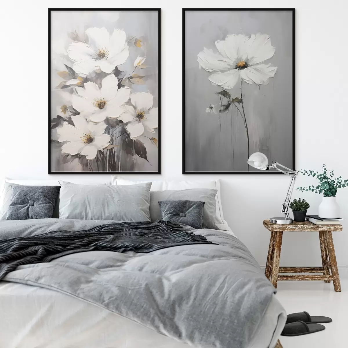 Poster Artistieke compositie met witte bloemen en gestructureerd oppervlak in minimalistische stijl d00574