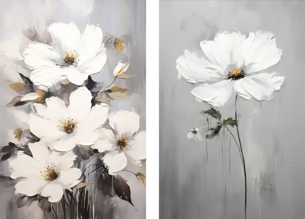Poster Artistieke compositie met witte bloemen en gestructureerd oppervlak in minimalistische stijl d00574