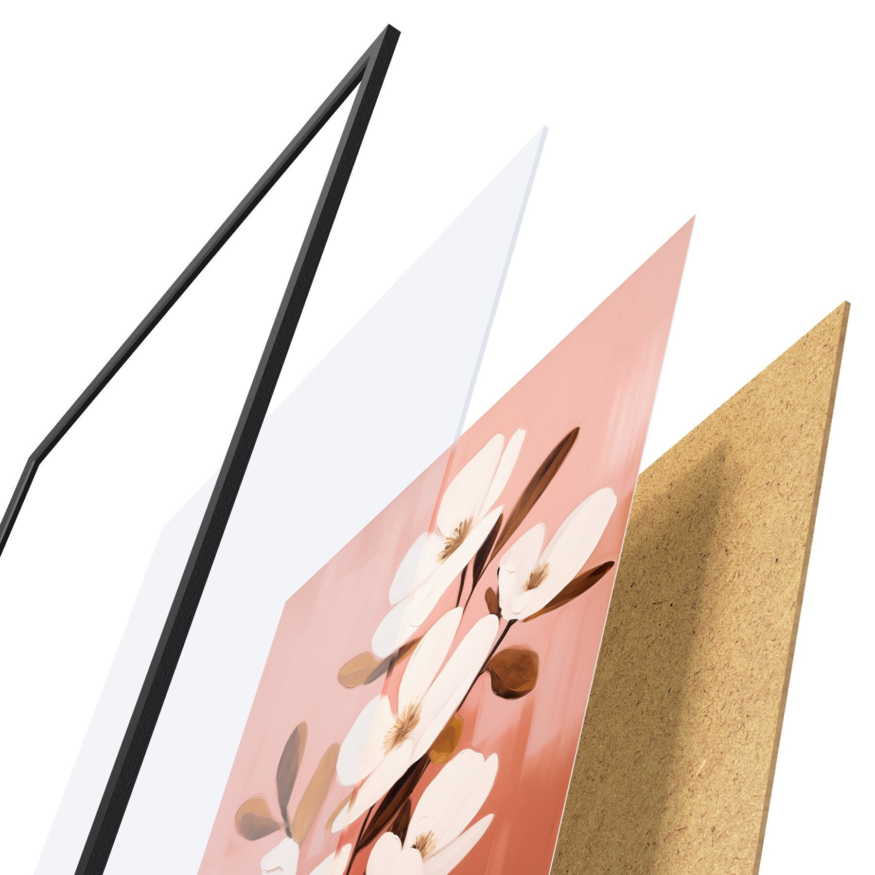 De poster bestaat uit een frame, plexiglas, geprinte afbeelding en spaanplaat achterkant. De poster kan meteen aan de muur worden gehangen dankzij de bevestigingen op de achterkant.