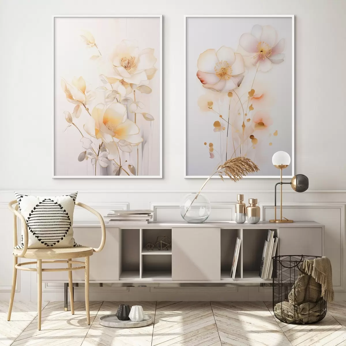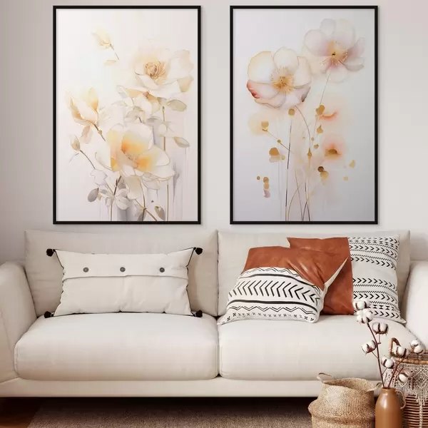 Poster Bloemenduet: zacht tweeluik in aquarelstijl met elegante lijnen d00577